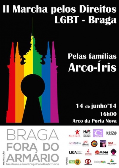 O colectivo Braga Fora do Armário juntamente com outras organizações, realizam a segunda Marcha pelos Direitos LGBT de Braga que vai decorrer a 14 de Junho, voltando o Arco da Porta Nova às 16h a ser o ponto de encontro para o percurso que atravessa o centro da cidade.