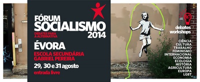 O Fórum Socialismo 2014 - Debates para a Alternativa, realiza-se no último fim de semana de agosto na Escola Secundária Gabriel Pereira, em Évora. Como habitualmente, o Fórum é composto por dezenas de painéis com temas variados (ver programa), passando pela ciência, cultura, trabalho, feminismo, economia, história e muito mais.